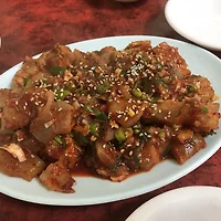 오래된 돼지고기에서 나는 잡내는 전혀 없고 고기를 절여둔지 오래되지 않아 고기가 쫄깃한게 정말 맛있습니다.