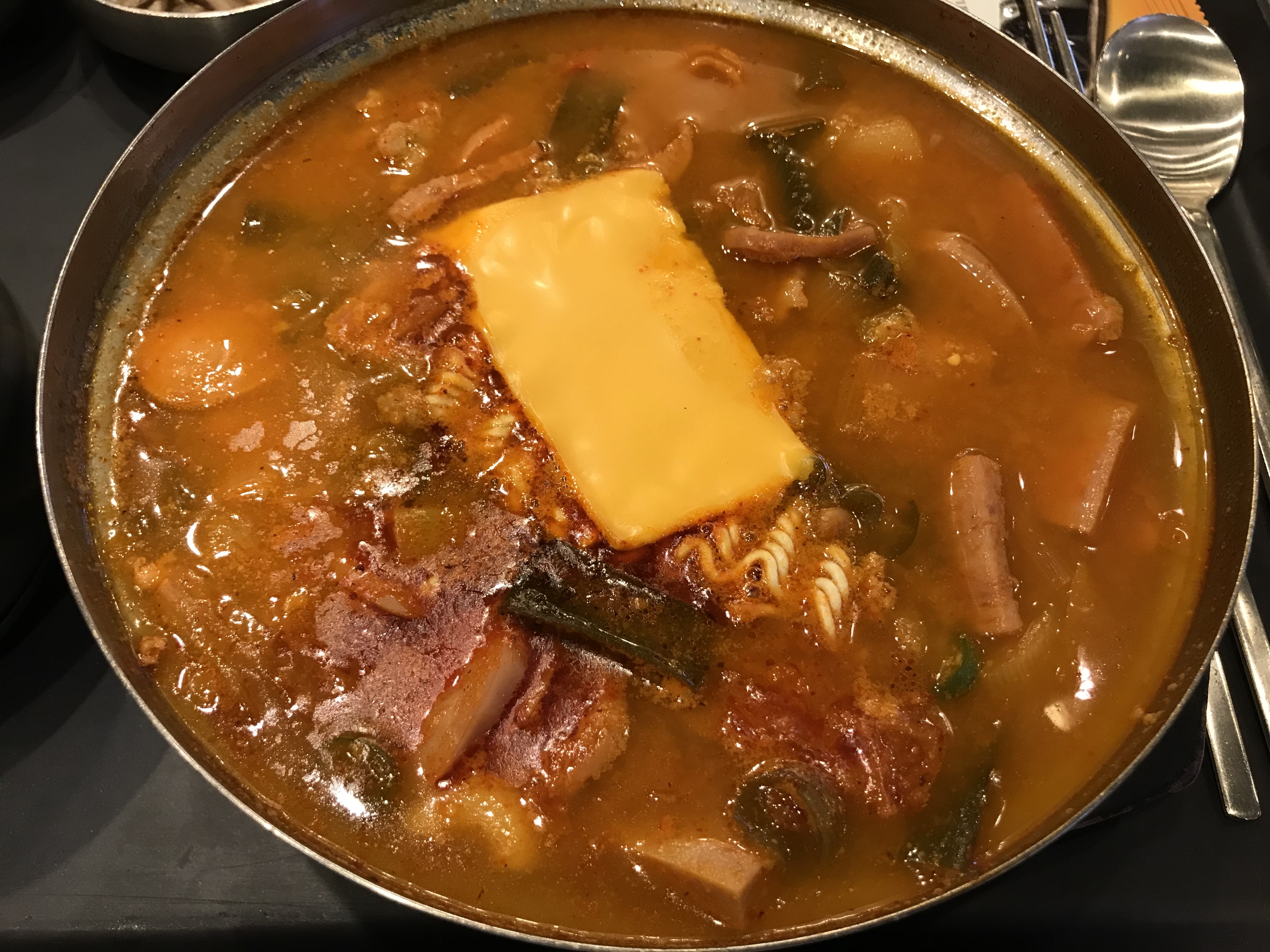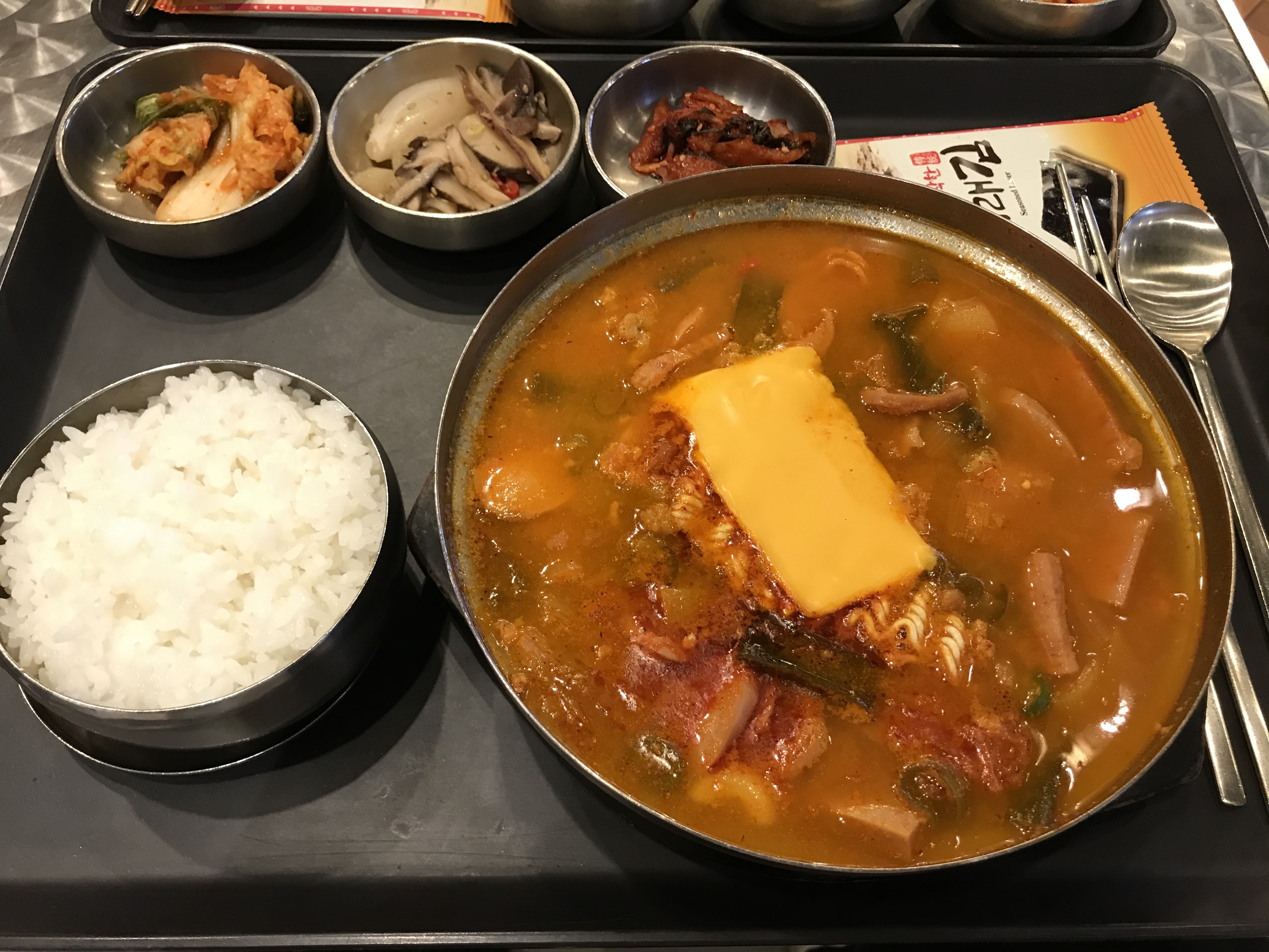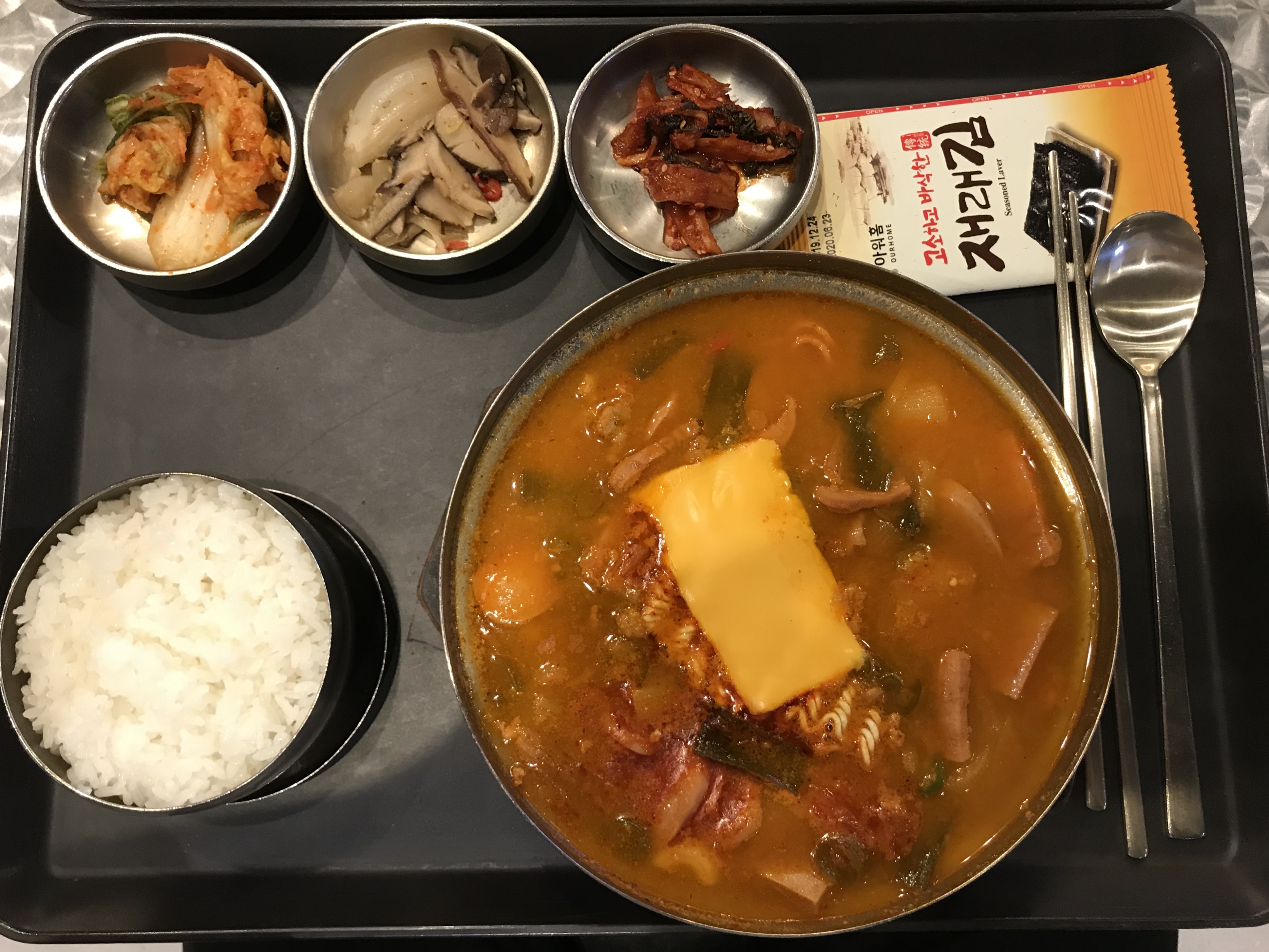 푸드코트 아워홈에서 있는 손수밥상에서 부대찌개를 시켰네요.