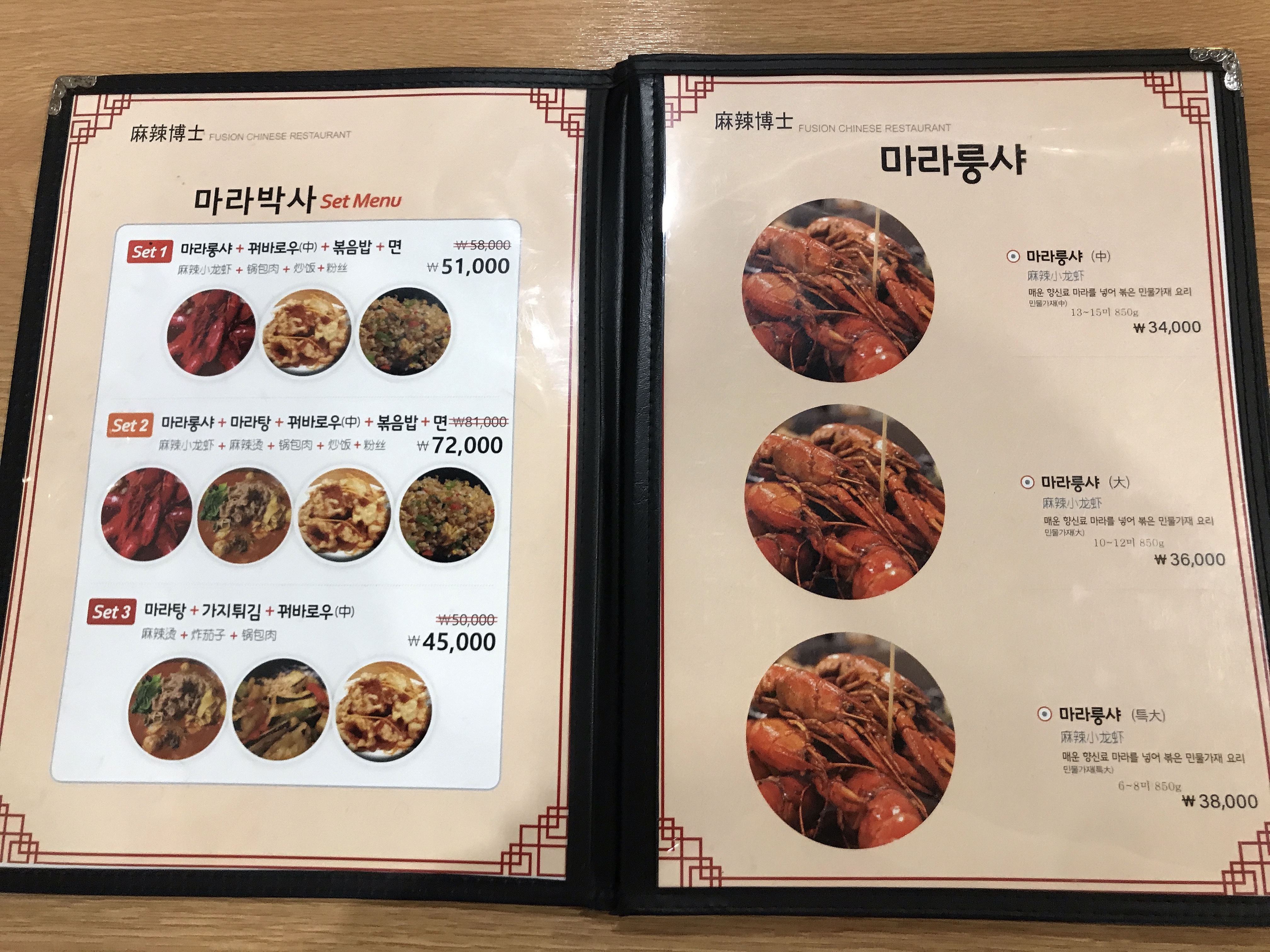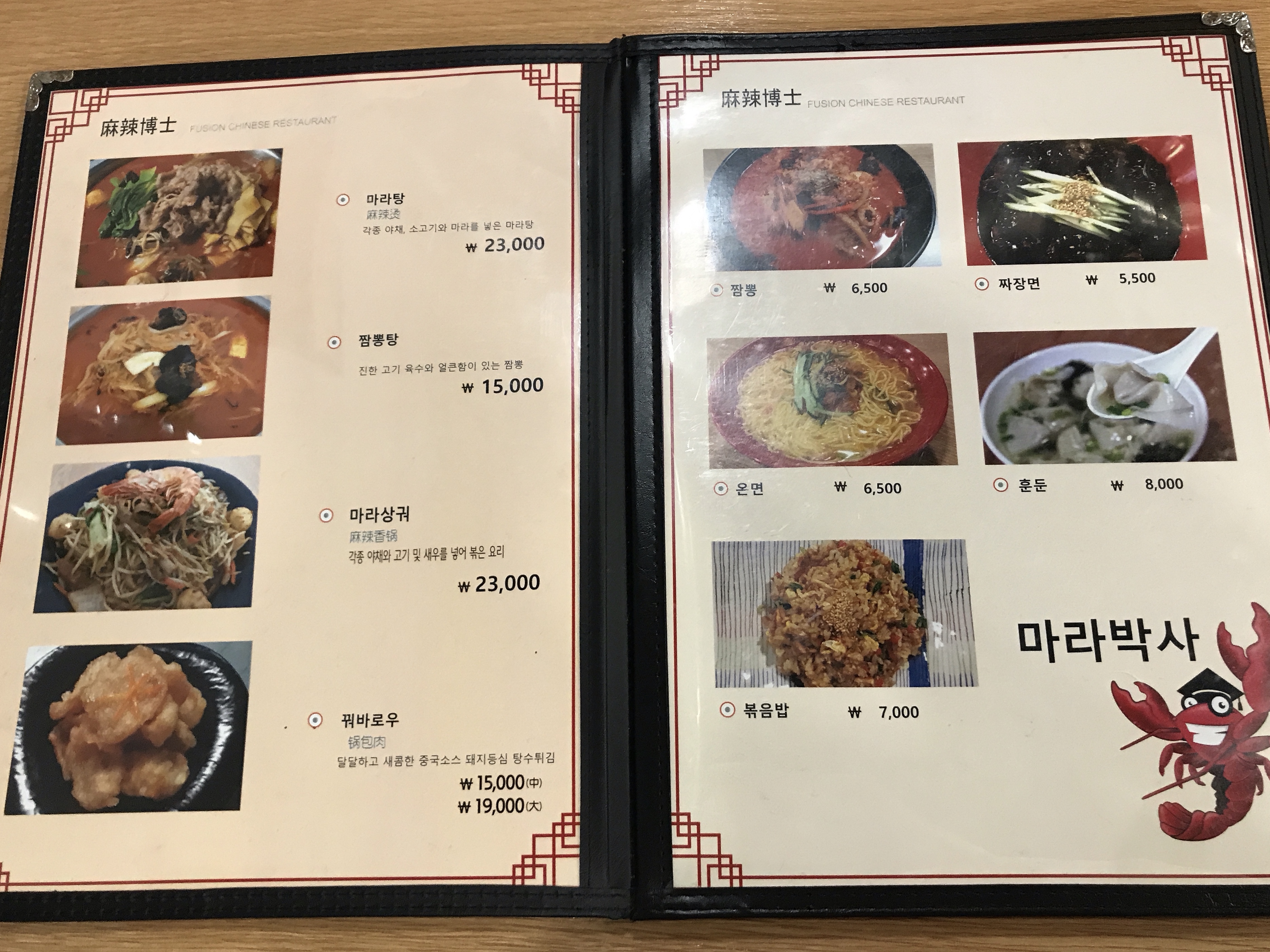 마라룽샤부터 꿔바로우와 볶음밥까지 있습니다.