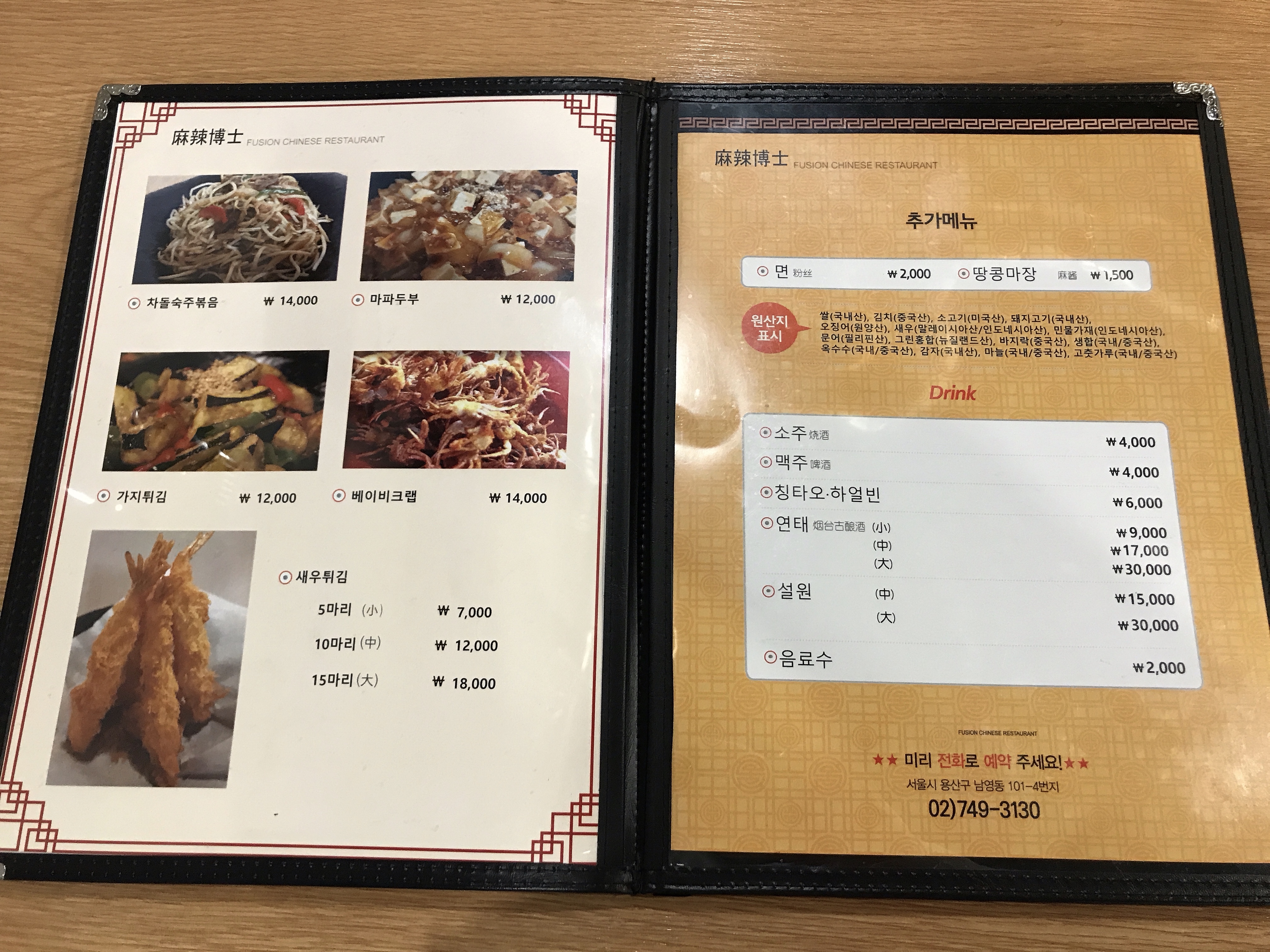 메뉴는 다른 중국음식점과 달리 있는것만 딱 있습니다.