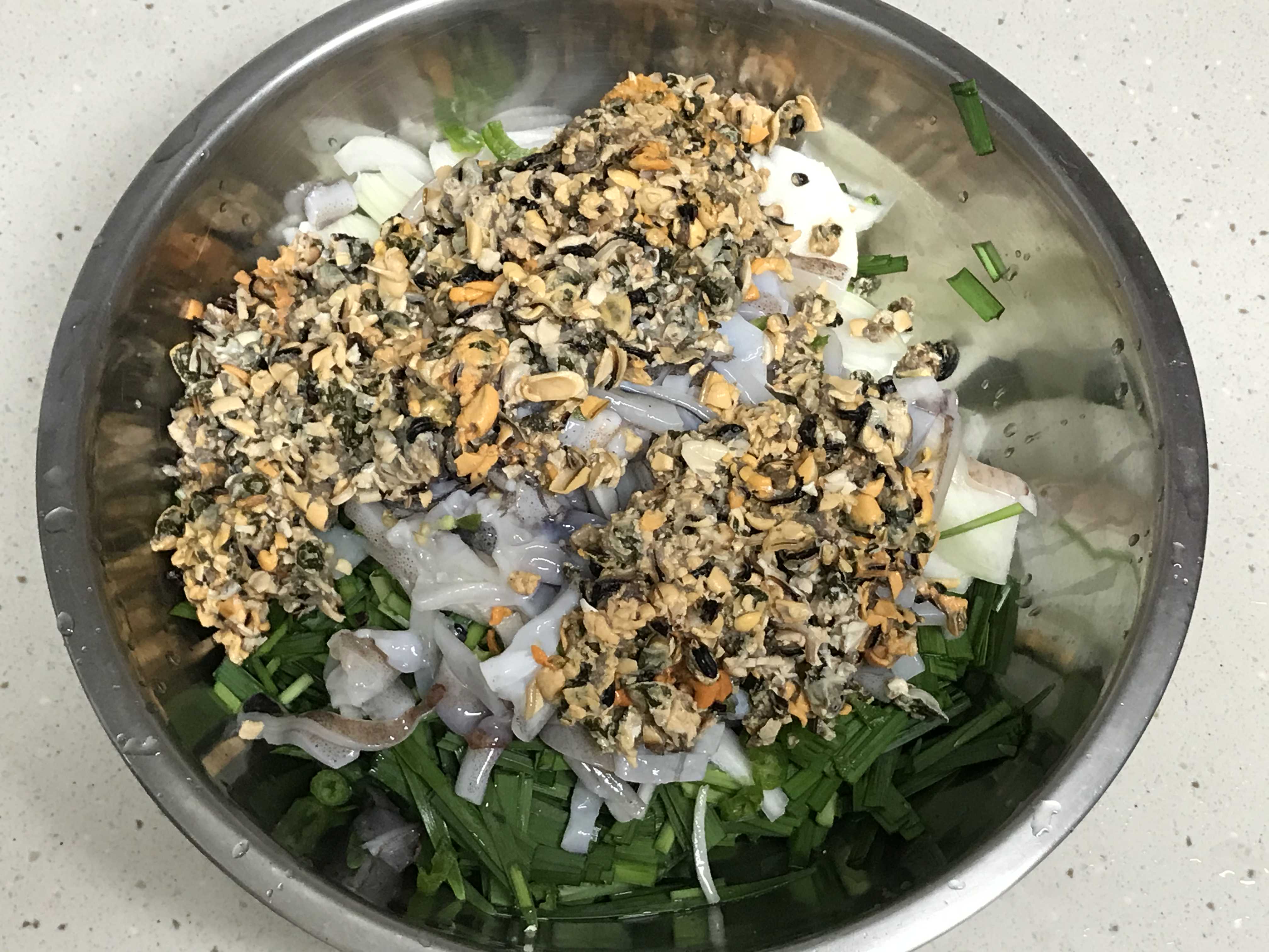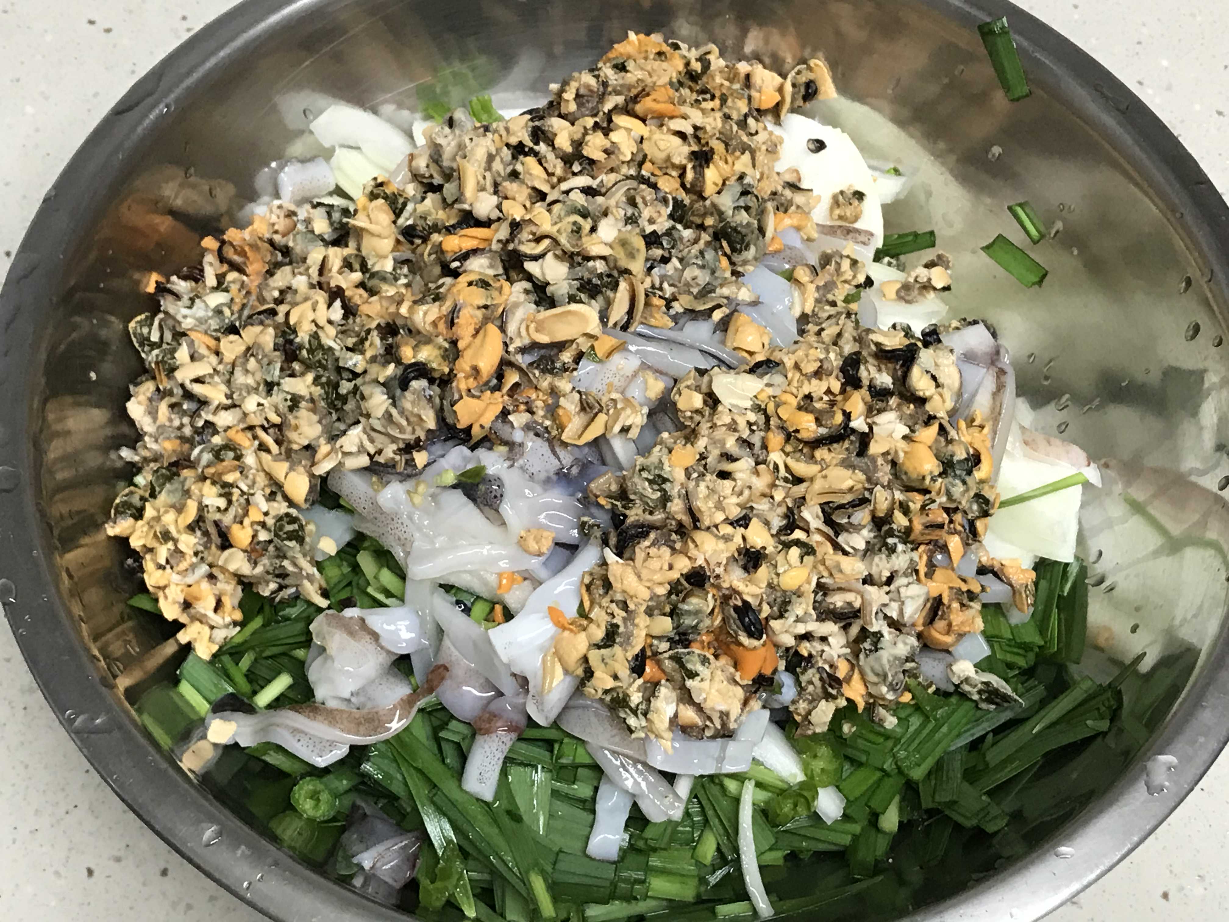 거의 뭐 해산물 반 부추 반 들어갔습니다.