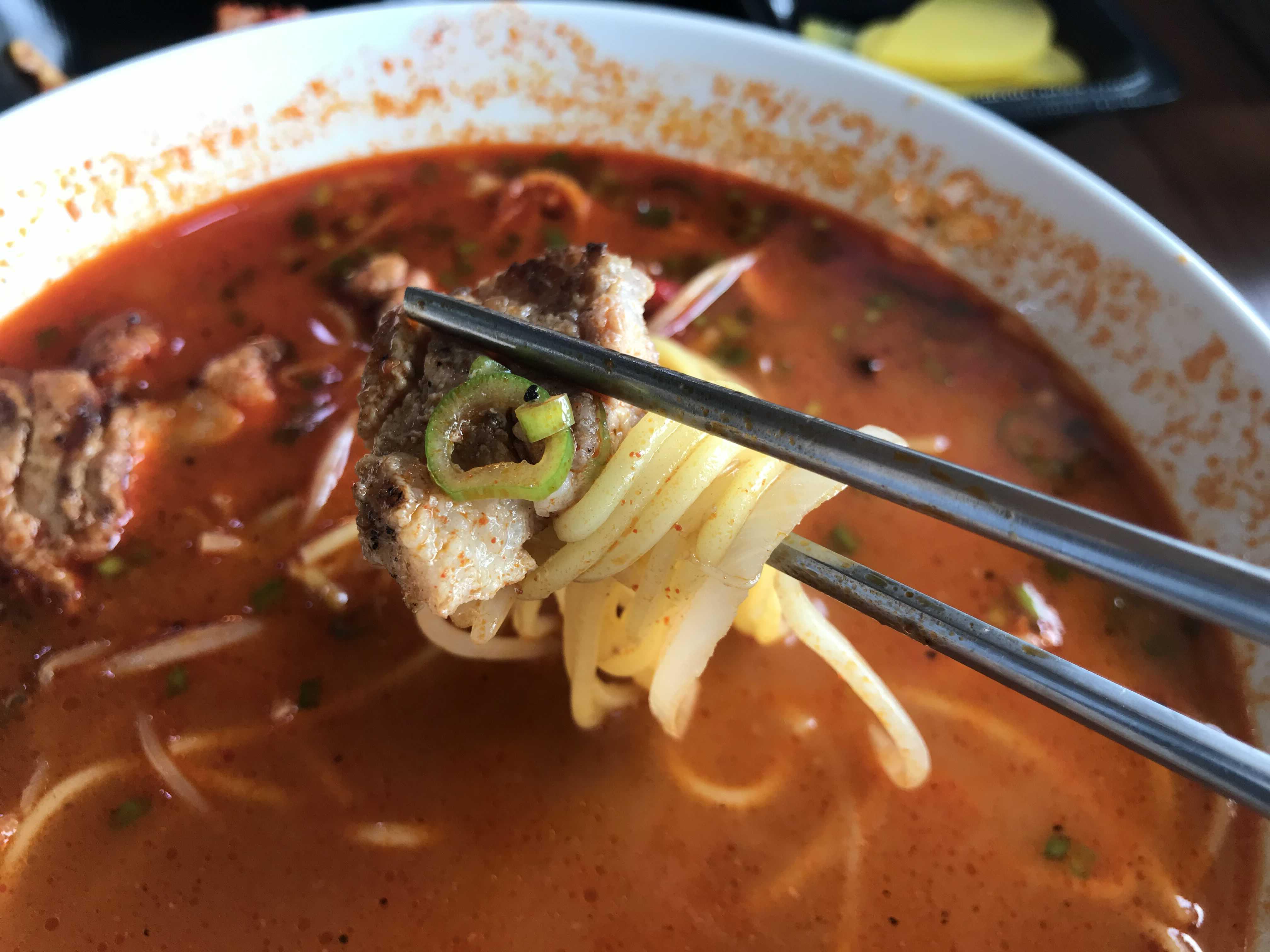 육수는 생각보다 많이 칼칼하지는 않았지만 일반 고기국수의 묵직한 맛이 살짝 느껴지고 매콤했습니다.