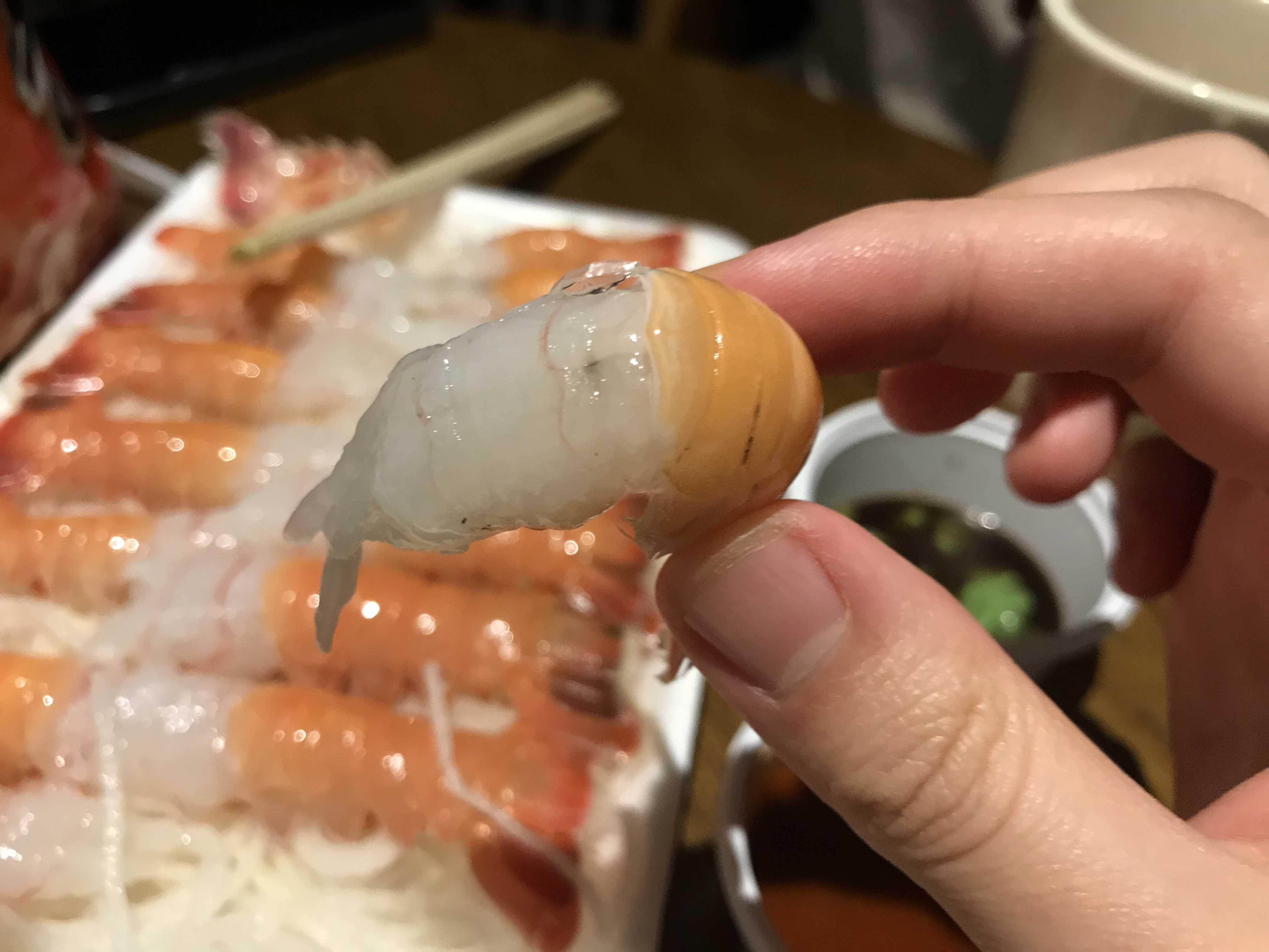 딱새우 먹는법은 다들 아시겠지만 꼬리부분을 엄지손가락으로 꾹 누르면 살만 빠져나옵니다.