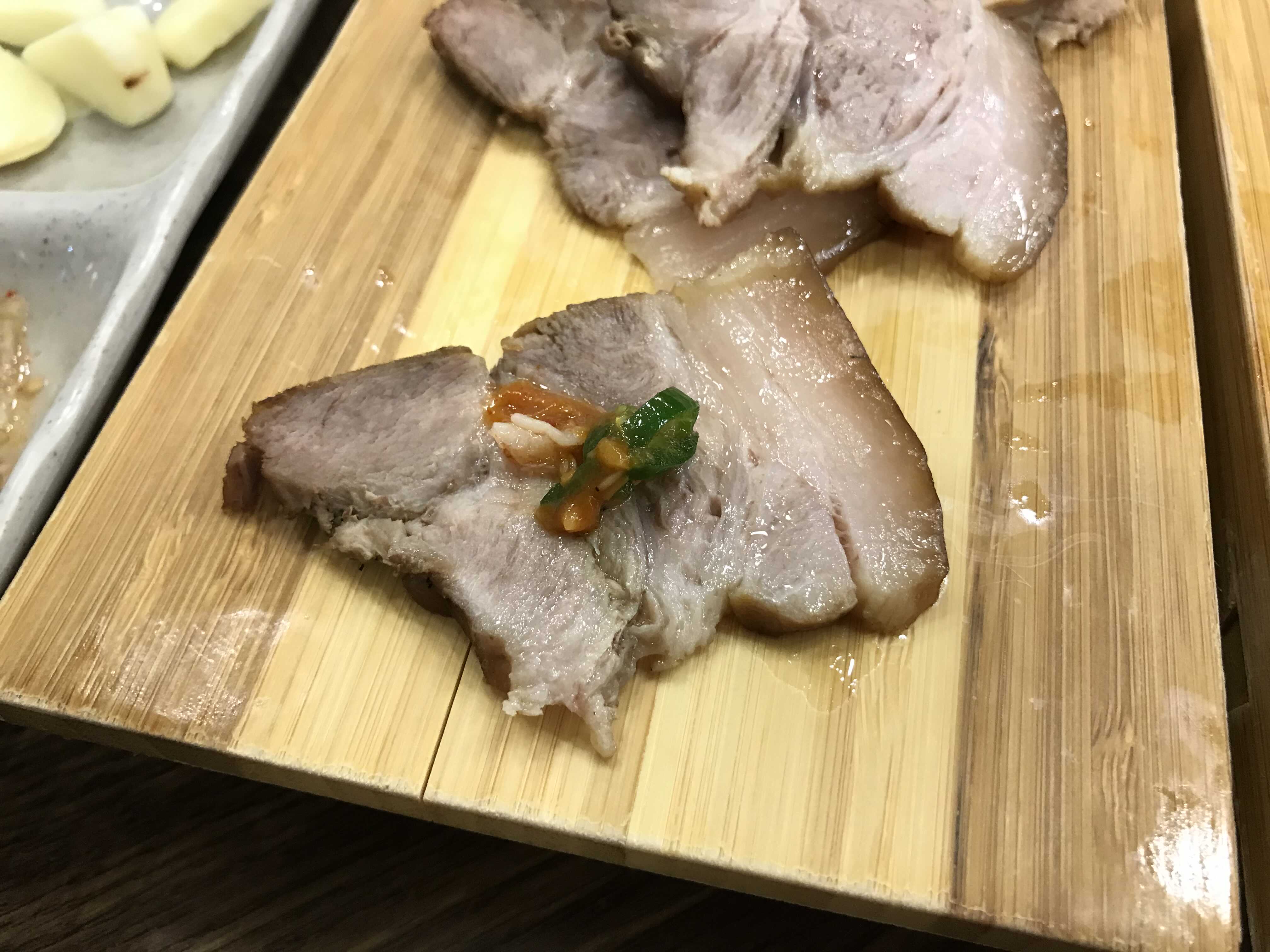 흑돼지로 만든 돔베고기인것 같았고 쌈장과 쌈채소에 같이 먹기 좋았습니다.